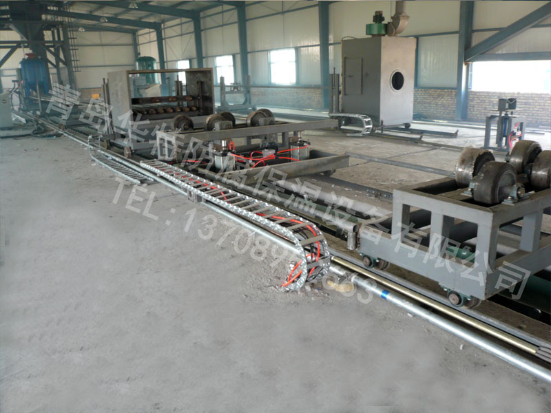 钢管内壁喷丸清理机工作原理: 利用压缩空气将钢丸喷射到钢管内壁上,使金属表层产生塑性变形,并形成强化层。显著提高弯曲、应力腐蚀等疲劳强度。