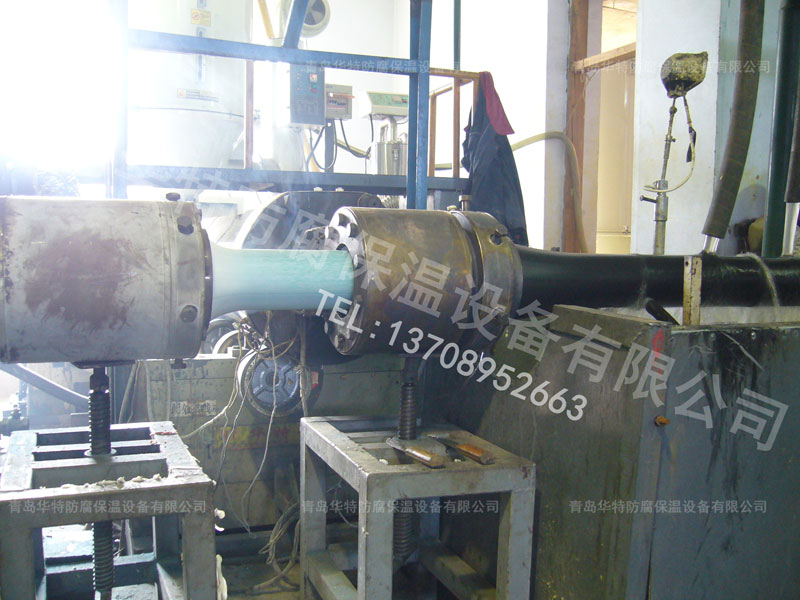 2PE防腐生产线介绍: 2PE防腐(二层聚乙烯)管道二层PE防腐结构,第一层胶粘剂(AD),第二层聚乙烯(PE),二种材料融为一体,各层厚度同三层PE相同