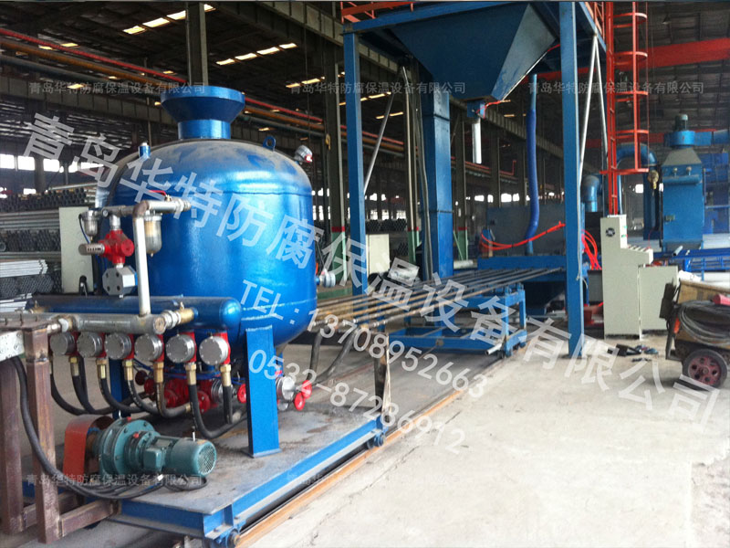 我公司研制的钢管内壁抛喷丸清理机,适用于清理钢管直径φ200-φ2500,所有规格钢管在一台设备上即能完成内壁的清理。本机可配线使用,技术成熟,生产效率高。