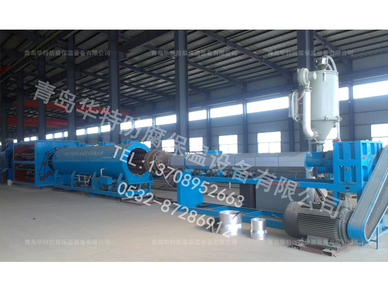 HT真空定径挤出系列生产线。是青岛华特防腐公司吸收和引进了国内外先进技术的基础上,博取众家之长,大胆实践,设计制造的一种新型高效节能真空系列挤出设备